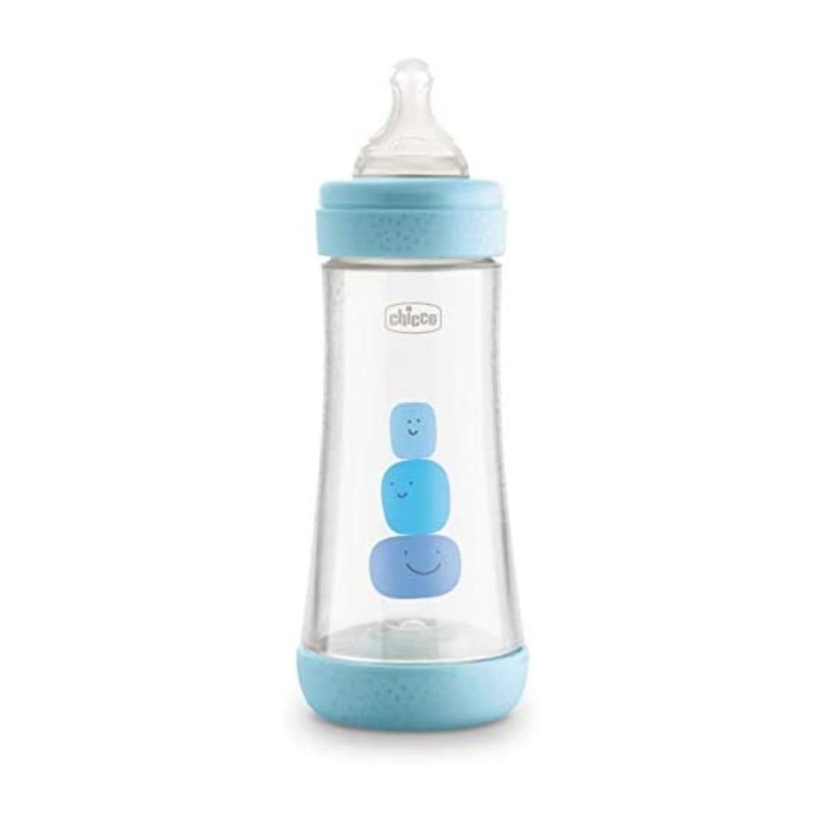 Versioni në ngjyrë blu i shishes Chicco për foshnje mbi 4 muaj, me të njëjtat karakteristika si modeli rozë. Ndihmon në kalimin nga gjiri te pija e pavarur. Përdor material silikonik higjienik dhe rezistent. Ideal për ujë, qumësht ose lëngje të lehta. Pa BPA dhe me dizajn ergonomik.