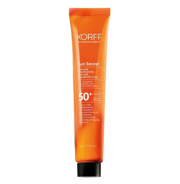 Korff Sun Secret Anti-Age and Protection me SPF 50+ është një krem-xhel për fytyrën për mbrojtje nga ekspozimi në diell, i freskët, i butë dhe i lehtë për tu aplikuar. I formuluar me kompleks filtrash fizik dhe kimik, siguron mbrojtje ndaj rrezeve UVA/UVB. Garanton rehati dhe hidratim të lëkurës së ekspozuar në diell. Mbron gjithashtu lëkurën nga plakja e parakohshme. Ka një nuancë të lehtë e cila përshtatet me lëkurat me tonalitet të celët.