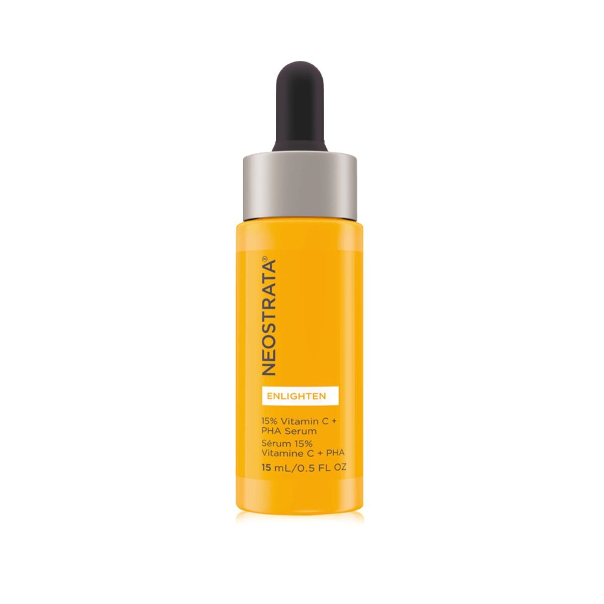 Serum i lehtë për ndriçim dhe reduktim të njollave. Kombinon vitaminë C me acide PHA për eksfolim të butë dhe unifikim të tonit të lëkurës.