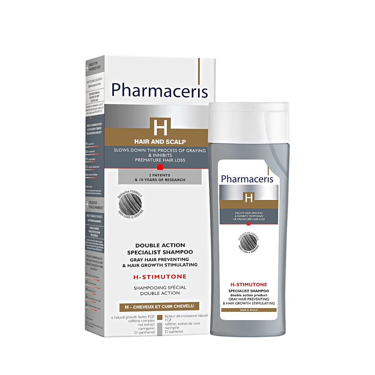 Shampo me efekt te dyfishte, e cila mbron nga renia e flokeve dhe parandalon formimin e thinjave. Rekomandohet per burra dhe per gra.