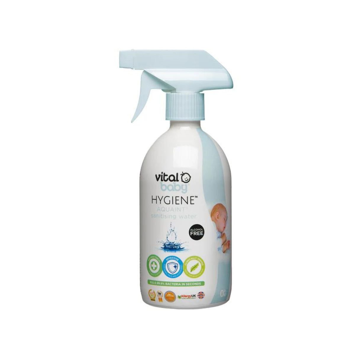 Spraj antibakterial për sipërfaqe dhe lodra, i testuar dermatologjikisht dhe pa kimikate të dëmshme. I sigurt për përdorim në ambientet e foshnjës dhe nuk kërkon shpëlarje. Praktik për pastrime të shpejta dhe të përditshme.